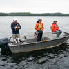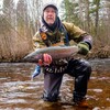 "Nice," said Smedley, who was reaching for his camera. This was a solid trout. After a couple of minutes, the scrappy spec was netted and deposited at the bottom of the canoe.