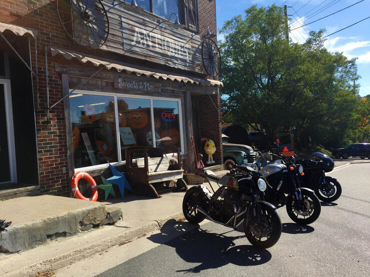 The area is known for its gorgeous lake views and fall foliage that attracts visitors from across Canada and beyond. Our ride continued down 118 West to Bracebridge which is another favourite riding destination for me. We balanced riding and sightseeing well, quickly taking in views of the Muskoka River and Wilson’s Falls as we navigated through the quaint town. The weather couldn’t have been better; the bright warm sun combined with cool crisp air was the perfect combination to ride in.