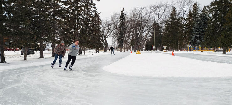 If you want to stretch your legs a little further on a skating trail, head to the Ramsey Lake Skating Path in Sudbury. This scenic, 1.5-kilometre-long path spans from the Sudbury Rowing and Canoe Club at the corner of Elizabeth Street and McNaughton Terrace to Science North. Heated change areas are found at both ends of the path. Keep in mind that this gentle path is designed for skating only, so hockey, ringette, and shinny are not permitted. The path is open from 4 p.m. to 8 p.m. Monday to Friday, noon to 8 p.m. on Saturday, and noon to 6 p.m. on Sunday.