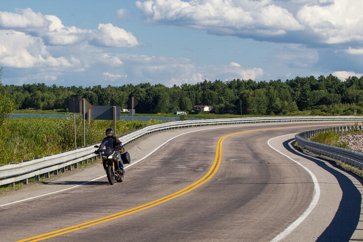 How do you relax? Read a book? Knit? Yoga? That’s all good, but for me I find that a few hours at 5500 rpm does the trick. Yes, the relaxing activity of riding a motorcycle, the rhythmic sway as you lean from turn to turn and the mental clutter-clearing focus required to stay on task. Out with the bad and in with the good with each twist of the throttle. With a work project eating up my summer and my brain bordering burnout, I find myself in a desperate need of some R&R. Not interested in studying maps, dealing with the GPS, or making decisions, I need to keep it simple. At 300 km and just five roads – all of which have numerical names containing no more than three digits, Northeastern Ontario's Lake Nipissing Circle Tour might just be the perfect day trip, a no-brainer decision of sorts.