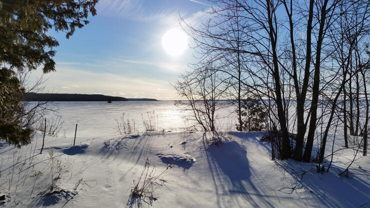 We doubled back to the M2 to trail M1 and headed towards the community of Manitowaning which took us through some of the island’s frozen farmland and ridges overlooking Lake Manitou, which lays claim to being the largest lake, on a freshwater lake island in the world.