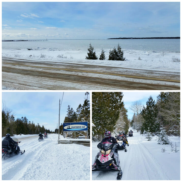 Much to our surprise we found that the island is home to almost 400 km of trail not including three of the longest and most scenic ice crossings in the Province. That set off our “sled senses”. The thought of finding trails where there might be less traffic with only a 4.5 to 5 hour drive seemed almost too good to be true. We delved deeper by pulling up the Manitoulin Snowdusters SC FB page and were excited by their posts and pictures. Why hadn’t we seen this before? What were we missing out on all this time? What was this hidden gem? We had to find out. We’d both been there in other seasons doing things like fishing, hunting or riding bikes but we had never considered this for a sled destination. We were going to change that. Facebook is a great tool, one quick message to the club FB page, and we were invited to join a few of the members on a ride.