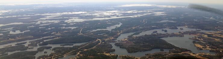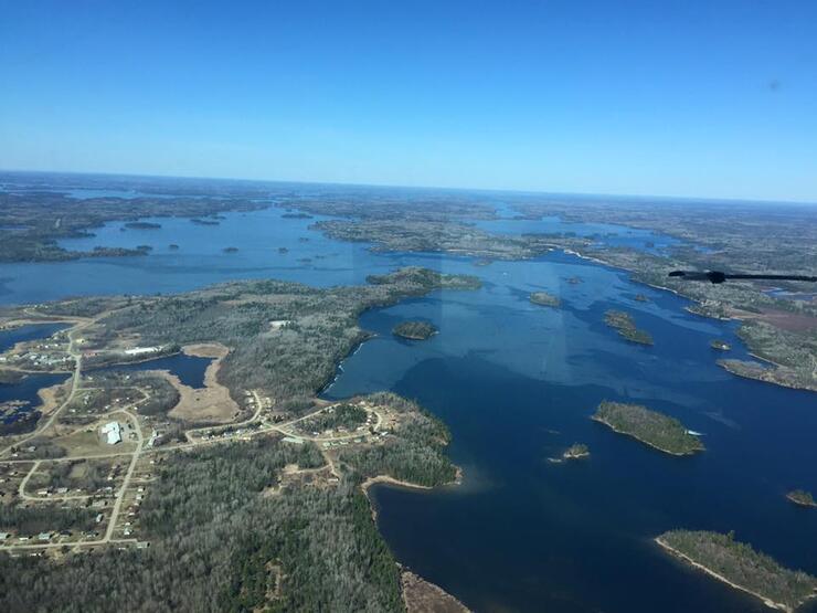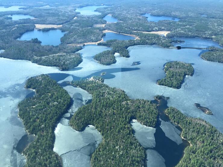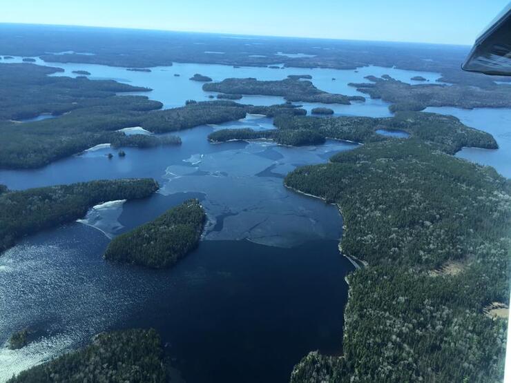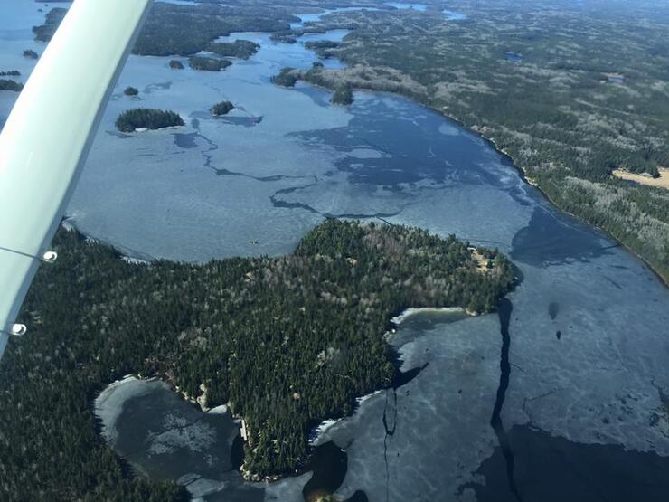 Taken by Northwest Flying Inc. on April 26, you can see there's still ice on Rowan Lake. You can see some open water right near Nielsen's Fly-in Lodge.