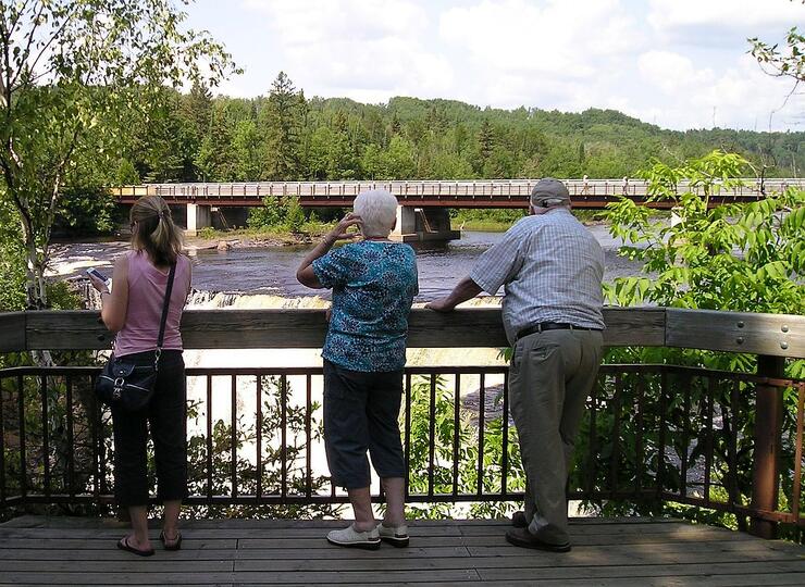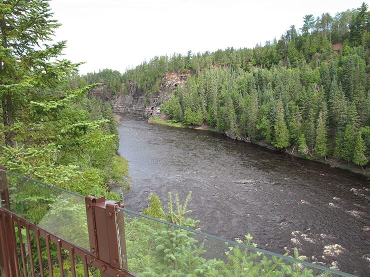 There are several platforms and a nice boardwalk with safety rails for viewing the falls from both sides. If you come from the east and Thunder Bay, pull out of the parking lot after your initial viewing and drive or walk over a bridge over the river and check out the small but pretty visitors' centre, where they have displays set up on the history of the area, including native culture.