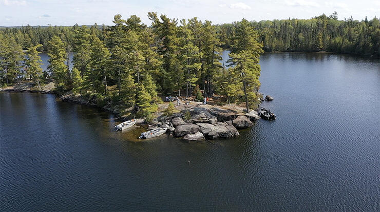 Our trip took us there in mid-September, just as the leaves were starting to turn. The reds, yellows and oranges were screen-saver-worthy. This is also a great time for the “fall feed.” The walleye, lakers, pike, and smallies get very hungry and eat to build up weight to survive the winter months. Our target was smallmouth and lake trout. Well…I ended up catching my personal best lake trout! We ended up with several lakers and even kept an “eater” for shore lunch. There’s a great small island spot on Eva where we met up with another group. I’ve said it before: no restaurant can match the taste and experience of fresh-caught fish in the Ontario wilderness.