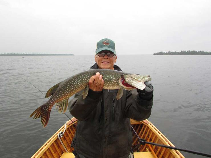 Cindy’s dinner that night was certainly worth being on time for, and after dinner, we went back out and caught 20 or 30 more fish, including several good pike and at least two more walleye over 22 inches.