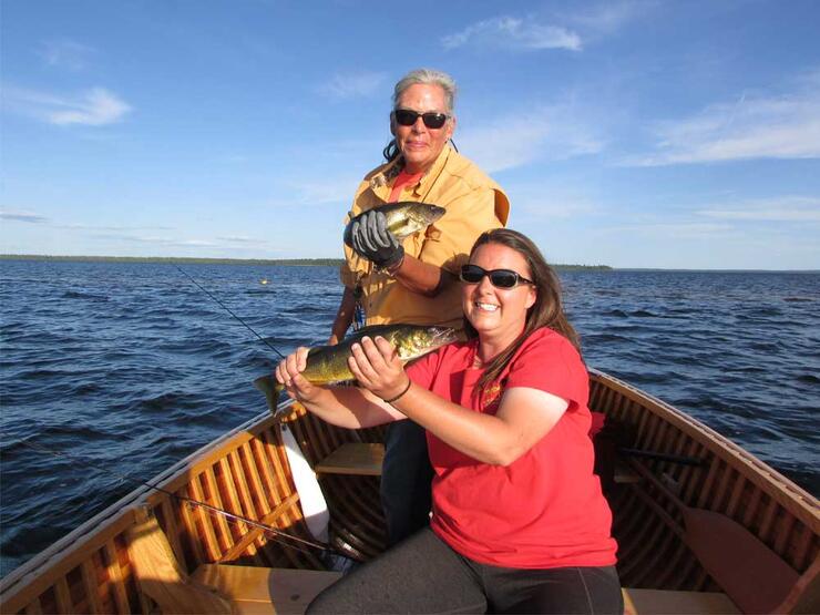 The short flight on Forde Air Service out of Hornepayne, Ontario dropped us into Gary and Cindy Wallace’s Timberwolf Lodge, and within the hour Gary had us in a strip cedar boat and “out around the point there” for some windy drifting. Three walleye later, Tina had caught and released a dandy, 25-inch fish that had to go 4 pounds or more. That answered two questions for me: yes, the girl still has it, and obviously, there were some good fish here. After showing us around a bit more, Gary handed over the throttle, and Tina and I set out to see what we could find on our own.