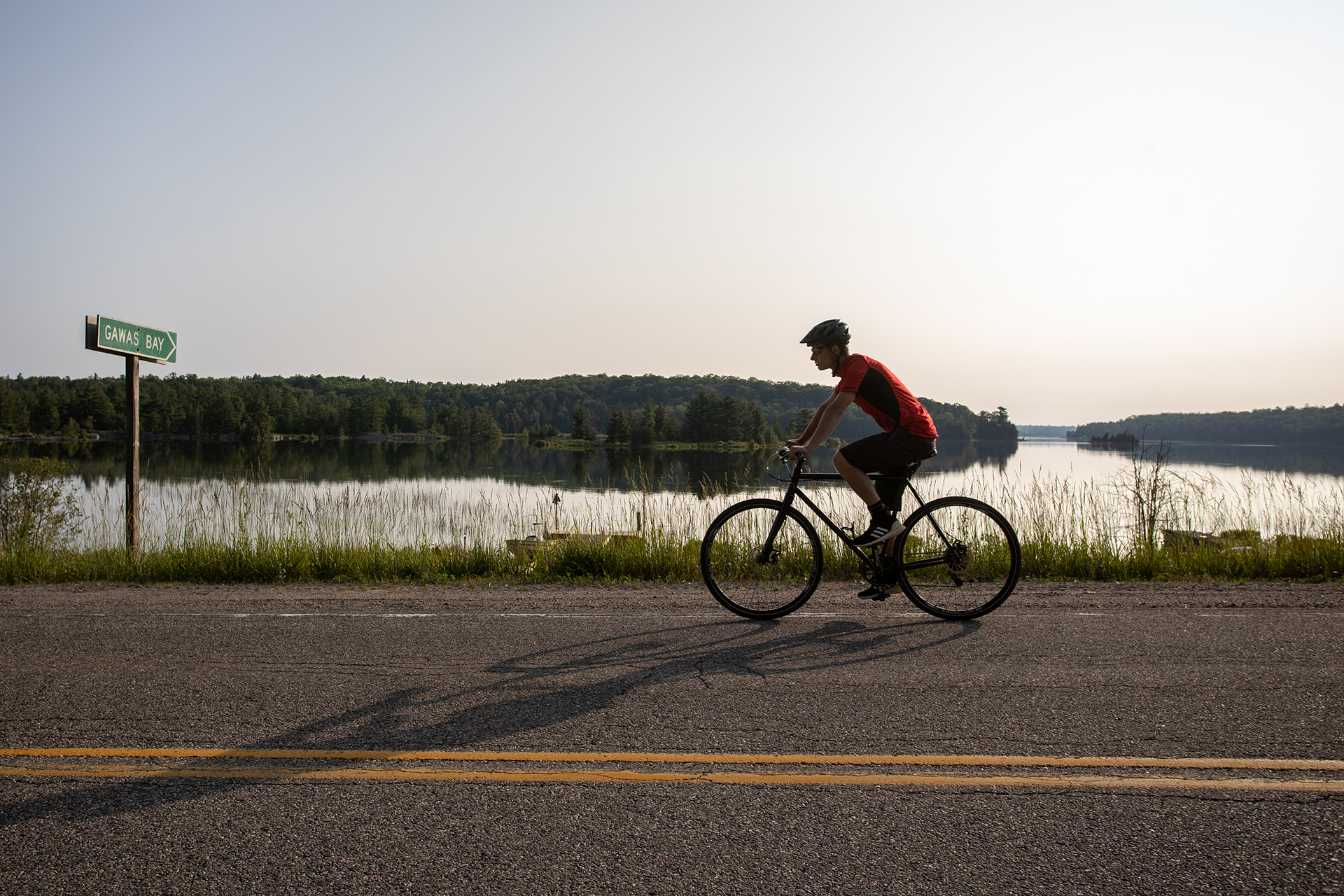Once you depart Richards Landing, it is welcome to the country: farmland views, glimpses of the North Channel, forest-lined roads, and no services for the next 50 or so kilometres. The route offers a steady supply of uphill challenges and downhill rewards to keep things interesting. The few cars that we did see offered plenty of space as they passed. At one point, one enthusiastic driver offers a few cheers of sport on a particularly challenging uphill.