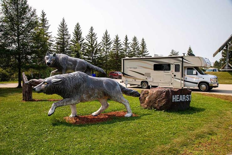 There are more photo opportunities with animal statues in Hearst, this time wolves and moose at Gilles Gagnon Tourism Information Centre. We visit the Heritage Sawmill Museum, learn about the area's lumberjacking history, and discover the ins and outs of vodka making at the Rheault Distillery. Another fantastic day ends with a lake view, another spectacular sunset and some delicious poutine at the family-run Veilleux Marina and Campground.