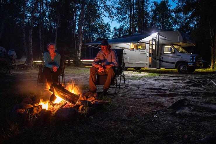 The pull-through site at Serpent River Campground showcases RV travel benefit number two; the setup couldn't be more straightforward. We park, open the awning, set up the camp chairs and start the fire, done. The sound of laughter, the cling of horseshoes and the call to buy your 50/50 draw tickets from the guy in the golf cart add to the vacation vibe.