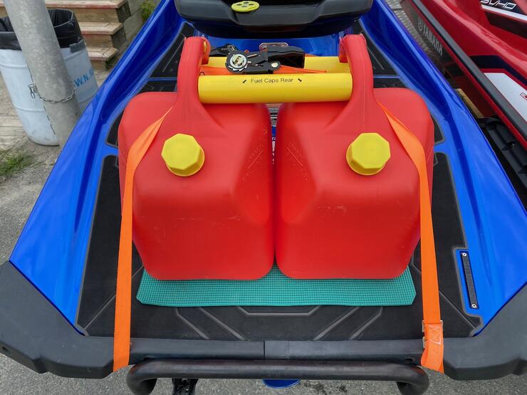 Know how long your PWC can run on a tank of fuel. Ensure that you plan fuel stops or carry fuel with you. Many marinas only carry regular grade, so if your PWC takes premium, as supercharged machines do, you may need to carry your own fuel. If your full day ride is in a more remote area, it is best to take fuel with you. There are fuel carriers made for PWC or you can strap a can to the rear deck for your ride.