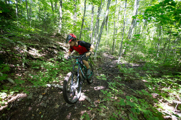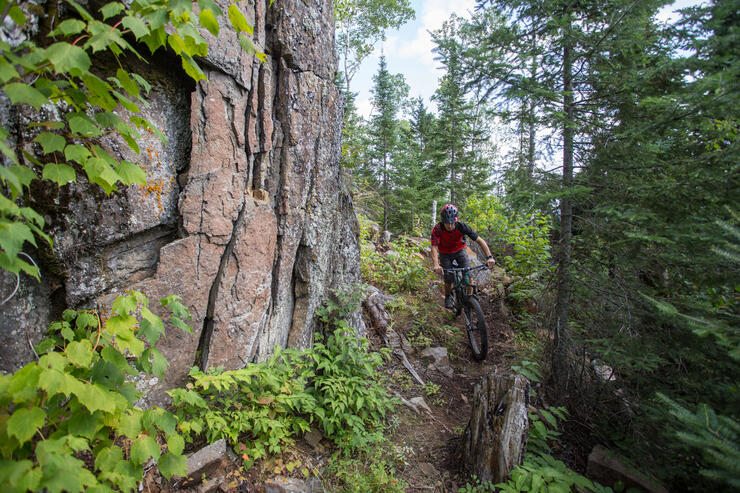 This one is a local secret, and not for the faint of heart. Once you get over the spectacular views, what you find here is the biggest elevation drop north of Lake Superior. The trail drops a very challenging 200 metres in elevation over its 5-km length. The riders who frequent this trail typically sport full-face helmets and body armour—it’s definitely for the advanced-skilled rider. Then there’s the challenge of getting back, as what comes down must go up—the ride back to the top is a long one!