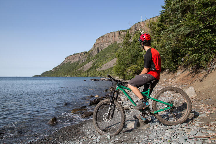 Located about an hour's drive north of Sault Ste. Marie, Pancake Bay Provincial Park is one of the few provincial parks in Ontario to allow mountain biking. The 14-km Lookout Trail definitely has a wilderness adventure feel to it. As part of the backcountry experience, you can expect to get a bit muddy, fight of some encroaching tree limbs, and race a few mosquitos.