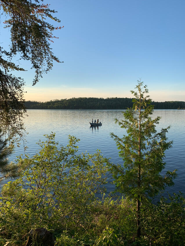 Overlooking Banning Lake, it has a pined, cathedral ceiling, large windows and a beautiful view of the lake. Storms are amazing to watch from the comfort of the lodge and it's positioned so that you can have a great view of the northern lights on a clear night when they are flickering across the northern sky. In the late evening, we enjoy some beautiful sunsets as the day winds down.