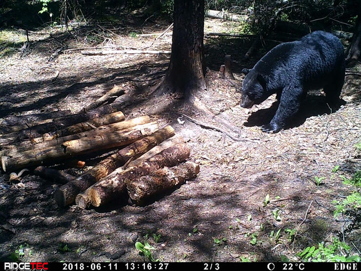 Later in the week, we decided to make a small change. After seeing some promising game camera pictures of a big bear on the move early in the day, we decided to get out to the stand earlier in the day. A longer sit would be tougher in the hot sun, but it could be the ticket to outsmarting these big bruins. Not long into the sit, the gamble paid off.