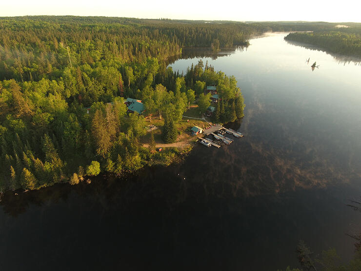 With warm weather and sunny skies on the horizon, the crew hopped in the truck for the eight-hour drive north, our trusty boat in tow. The end of the road was a boat launch off the beaten trail, between Timmins and Gogama. There, the guys met Gary Stocking, owner, and operator of Thunderstock Outfitters. He and his friend Dean Miller helped us transfer our gear from the truck to the boats, and we followed Gary in his barge across the lake to camp. Kenogaming Lake is everything you dream about when you think of a picturesque Northern Ontario lake. Miles of pristine water and shoreline led us to Gary and his wife Kim’s beautiful lodge and the neighboring guest cabins, situated on a hill overlooking the lake.