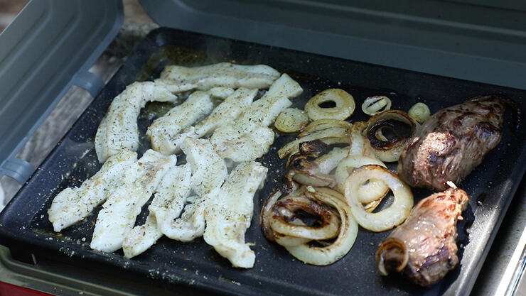 The next day, we decided to take advantage of the free morning and hit the lake for some fishing. Kenogaming Lake is best known for its walleye fishing, although there’s a good chance you’ll catch some northern pike as well. After a couple of fun hours trolling up and down the shoreline, the guys headed back to camp with their catch. One of the great perks of having Ryan on the trip with us, aside from the great company, was his skill behind the grill. He cooked us up some delicious steaks and fish filets on the Camp Chef pellet grill for lunch. It doesn’t get much better than that. After the hearty lunch, we got ready for our afternoon sit; our belts loosened a hole or two.