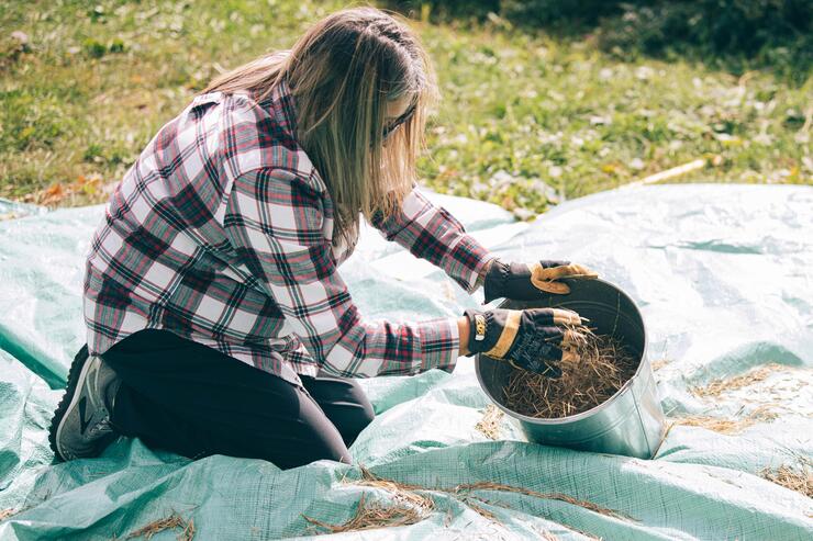 The group is divided amongst the camp’s five canoes. One person at the bow of the canoe poles the canoe through the rice beds, while the ricer in the stern reaches out with a cedar stick and bends as many stalks of wild rice as possible over the side of the canoe. Then the ricer uses a second cedar stick to gently knock the ripe grains of wild rice into the bottom of the canoe. (Despite the name, wild rice is actually an aquatic grass, not rice.) Back on shore, it’s time for drying. The wild rice needs to be dried immediately, so students spread it out on tarps and scatter it with a rake. Then, they remove debris like pieces of weeds, leaves, stalks and insects. They turn the rice constantly to help with the drying process, which can take from four to 24 hours, depending on the weather conditions.