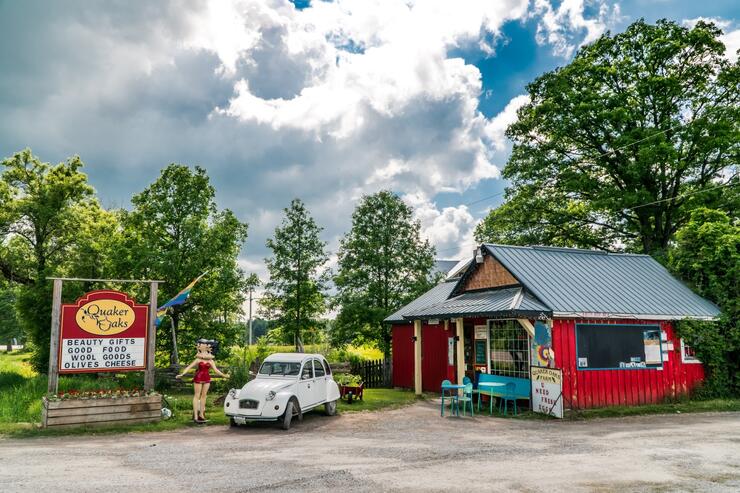 What Makes it Great: A big wide open parking area right out front seems to scream for some motorcycles to fill it in. Vintage charm and a picnic area out back make it great for group tours.