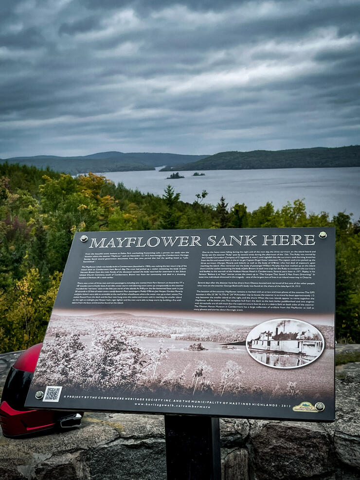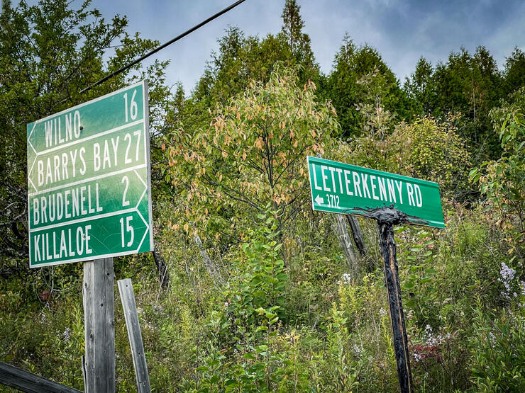 Back on 60, we sped towards Barry’s Bay to recaffeinate at the Madawaska Coffee Company. Siberia Road beckoned and we took it on, for a photo-op at the bridge by the Madawaska Kanu Centre. Next stop: the view at Kaminaskeg Lake Lookout reminded us why this area is called The Highlands as we looked down upon the blue of the lake.