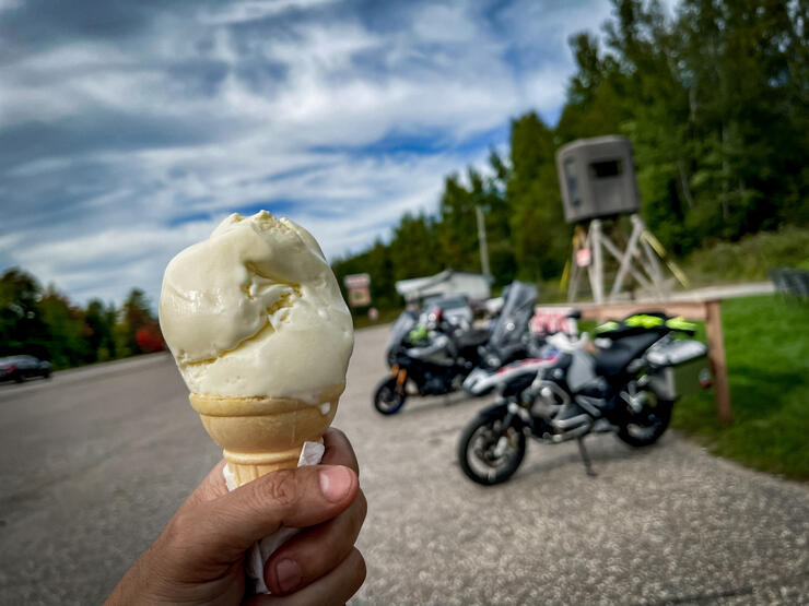 Saturday, I got the chance to show off the bike to perplexed scooterists at the Durham Scooter Rally in Bowmanville—definitely the odd duck in a sea of Vespas and Lambrettas. During a great ice cream run to the Enniskillen General Store, I had the time to figure out the bike’s smart engine modes, taming the beast to fall in line with the smaller scoots. At the end of the day, one more sleep had me dreaming of new roads to explore.
