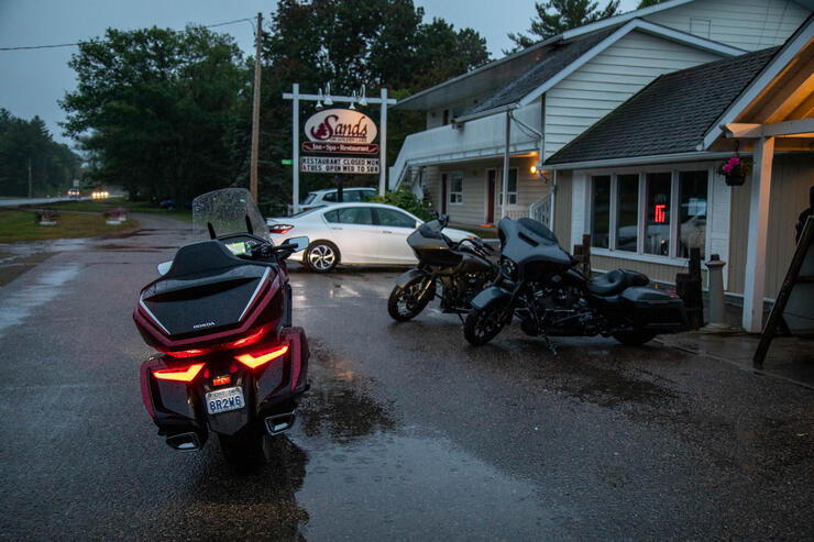 Day four, bummer, we are all still buzzing from the three-day highlight reel of Ride the Highlands, but life is calling, and it's time to point the front wheel for home. Under normal circumstances, the ride home should gently ease us back to reality, but unfortunately, we are well into what is forecasted to be the rainiest day of the year. Waterproof layers are fitted, and it's time to roll. Thanks to the Gold Wings sure-footedness, heated grips and seat, adjustable windshield, and the always impressive waterproof qualities of Klim's Gortex gear, all in all, the ride was not all that bad.
