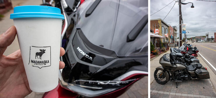 Day three, after yesterday's epic ride, today, the vibe is mellow in comparison. With Lee shackled to his desk at the office, we are on our own. Not a problem, unfold the official Ride the Highland map, and you will find routes aplenty. We take the long way to Barry's Bay via Round Lake Rd and Hwy 60. The coffee at Madawaska Coffee Co. hits the spot, but the pastry, oh, so good, will definitely be back for more.