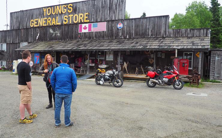 Full and content, we made our way back to the room and packed up the bikes. As we were filling up at the gas station we had a chance to talk to a local, who gave us some smoked trout to try! I love the camaraderie and strong community that exists up here. Everyone supports one another.