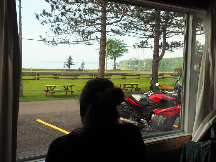 Despite the unrelenting rain pouring down on us as the sun set on Lake Superior, I couldn’t help but have a sense of calm. We rode down the dirt road to the resort and were greeted with lively banter and warmth as we walked in.