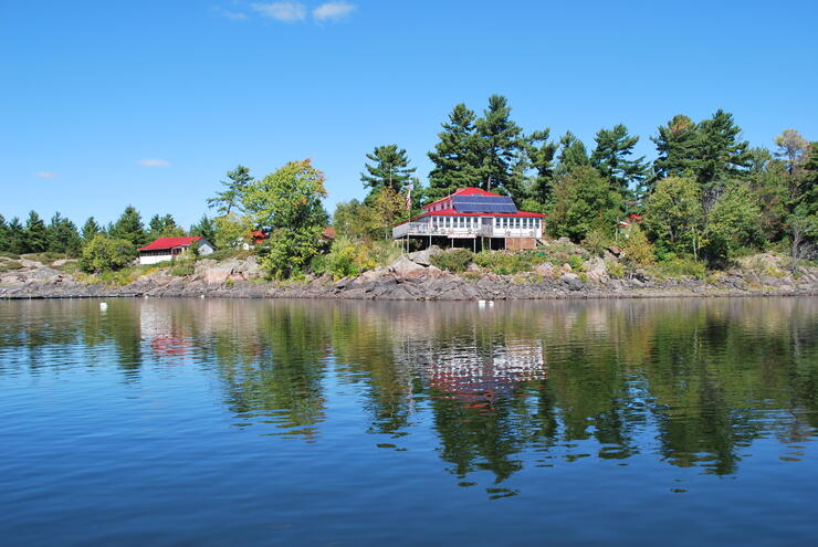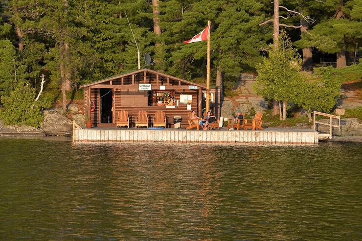 Another island getaway on our list is the French River Lodge, situated in Ox Bay at the confluence of the French and Pickerel Rivers. With a number of waterfront cottages and plenty of dock space, you’ll be off fishing and exploring in no time – especially now that Bass season is upon us. After a day on the water, come back and relax on your screened-in porch and watch the sun set over the bay. If you’re feeling social, check out the lounge area and the library, and don’t forget to stock up on supplies at the camp store.