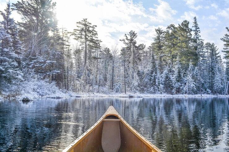 The end of the canoe season does not mean the end of adventure at Smoothwater. "Come back in the winter," said Lena, a staff member at the lodge. "It’s best time to really enjoy here," she added. "There are no nasty biting bugs. You can skate right across the frozen lake. Or if you like, you can also go cross-country skiing." Some of the ski trails are groomed, she told us. On others you create your own path as you glide alongside the trees delicately frosted with snow.