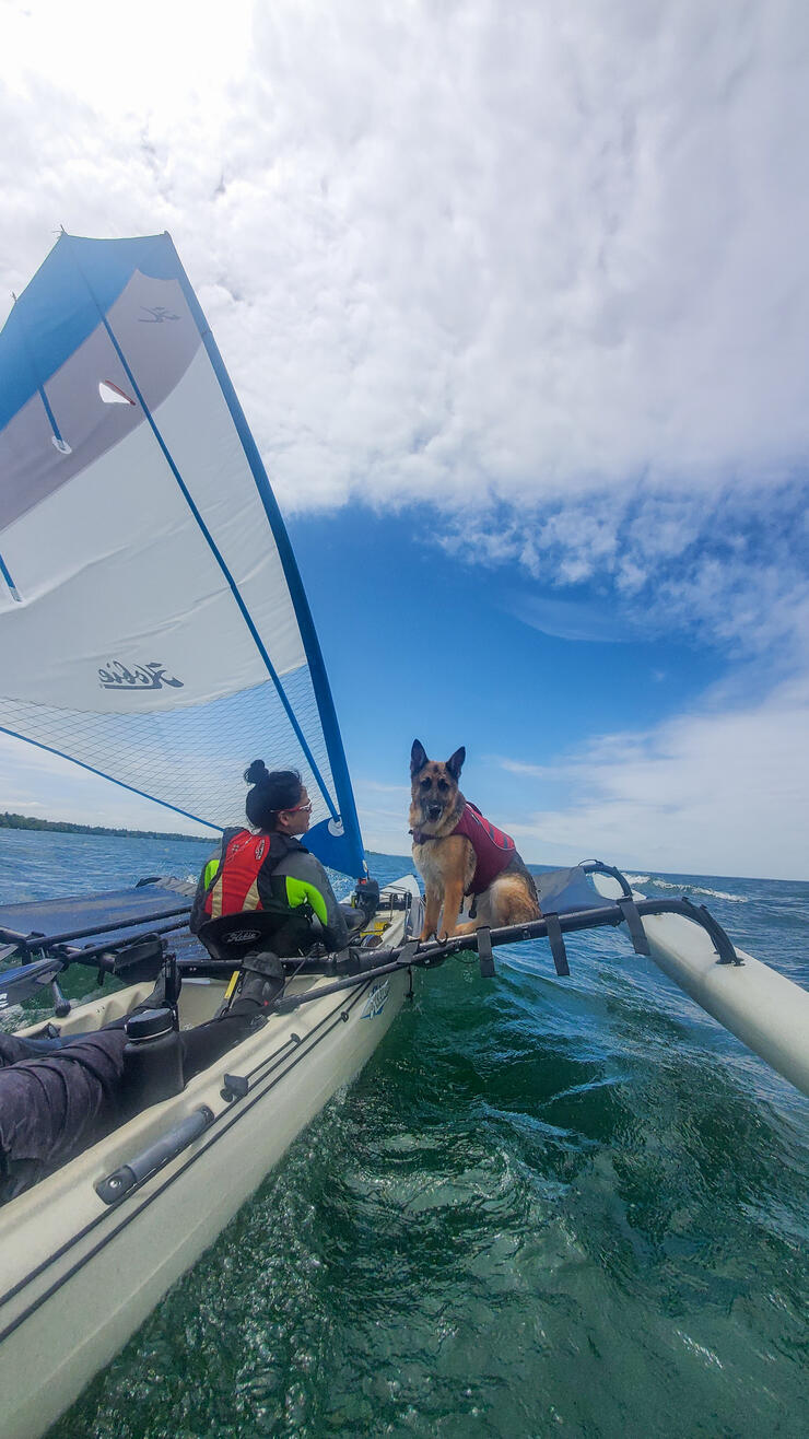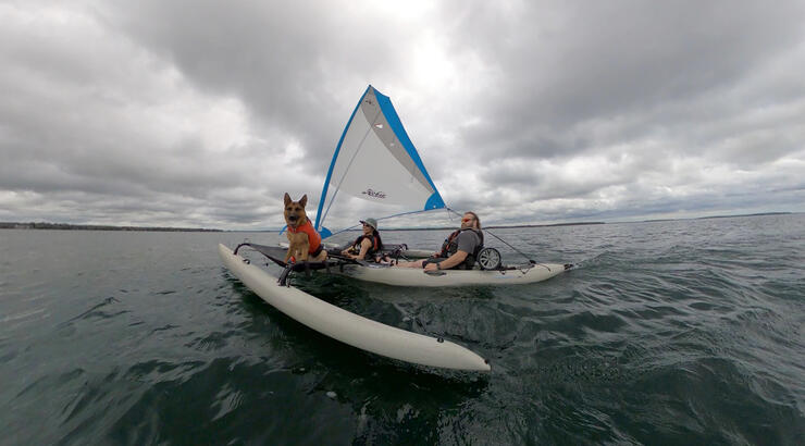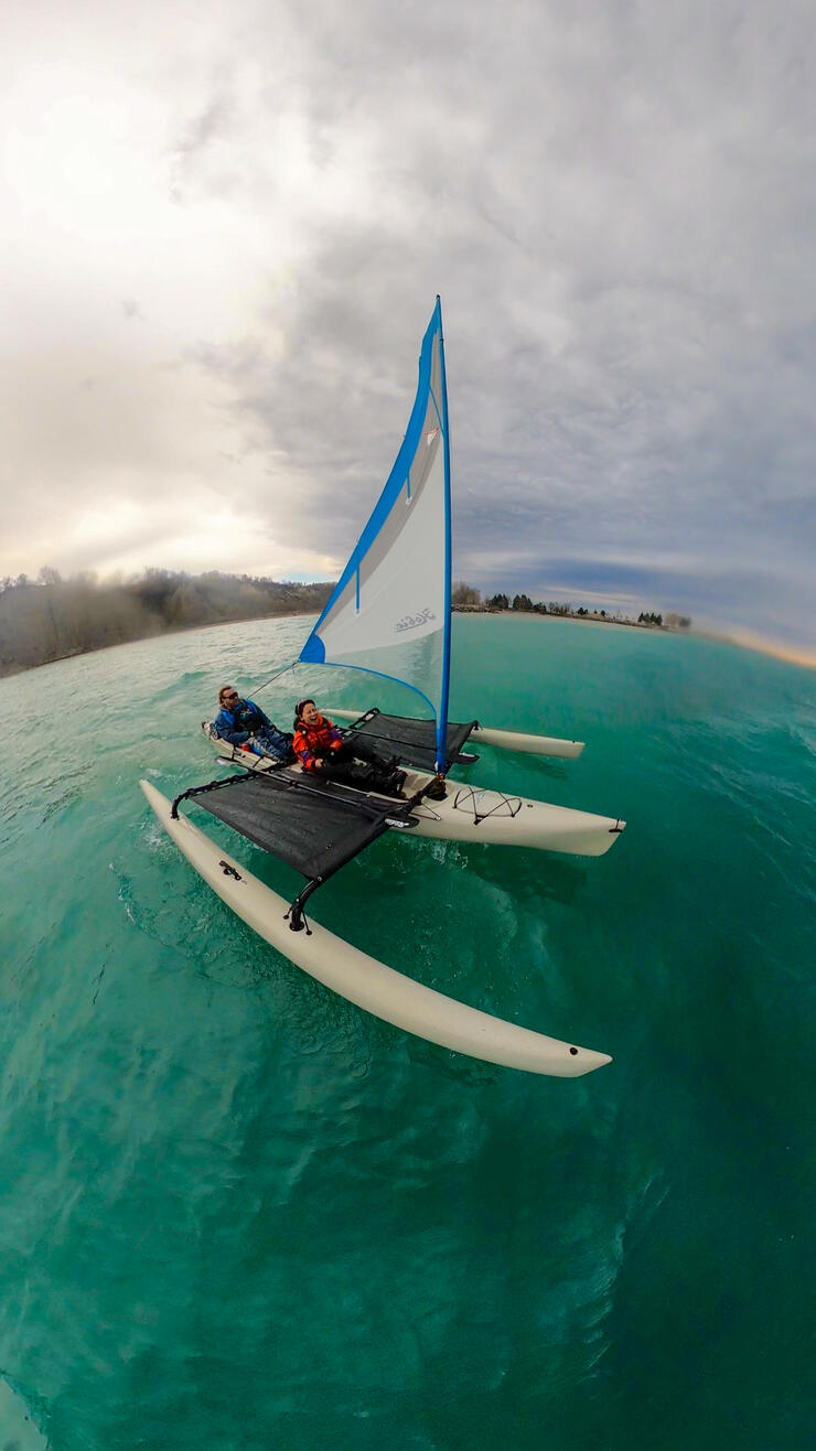 It's a great option for people new to sailing. As someone with no extensive sailing experience, I love that I can enjoy the ride while learning how to harness the wind in this durable and forgiving ‘sailboat with training wheels,’ as perfectly noted by Rob Lytle, a certified sailing instructor and manager from Fogh Marine, one of the few retailers in Ontario for the Hobie Mirage Tandem Island.