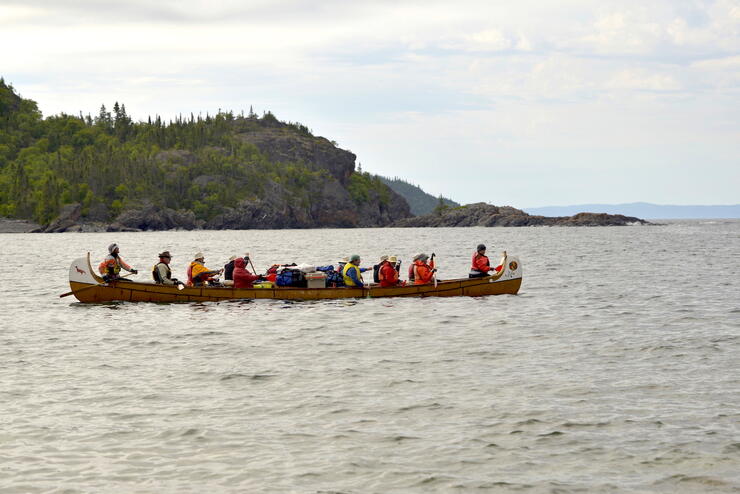 Note: A funny coincidence—Becky Mason, Bill's daughter, just happened to be paddling by in a voyageur canoe (pictured below) while I was at Otter Head. Read about her adventure on the Pukaskwa coast.