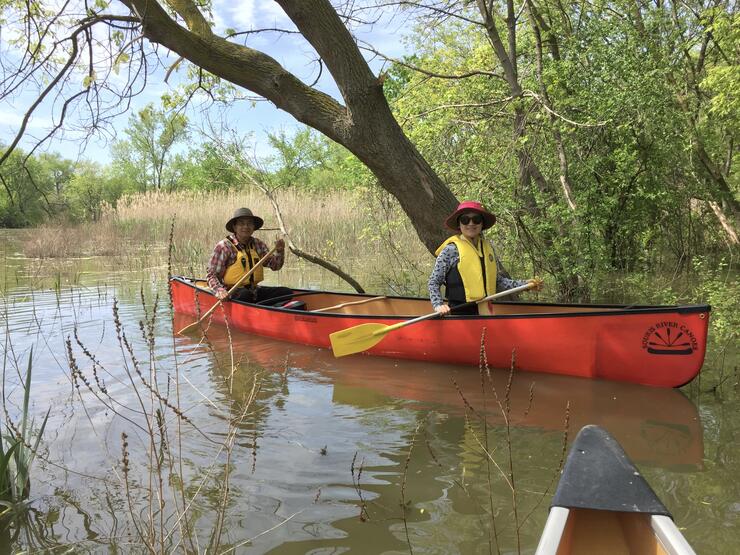 While enjoying a break under a shady willow tree in the middle of the Humber Marsh, my canoe partner, Andrew, and I met another tandem canoe couple who were happy to tell us about their favourite paddling spots.