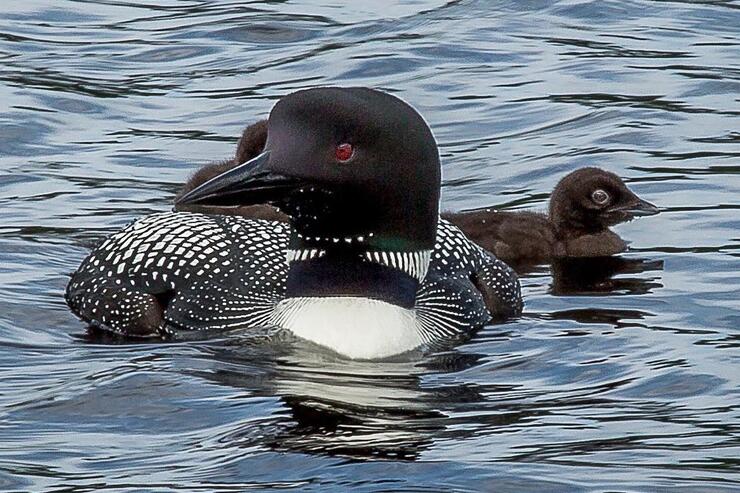 Our blue canoe drifts silently across the shallow bay in the shadow of Tom Thomson’s gravesite, which is located high on the hill to the west. A pair of loons approaches with two babies in tow, as curious about us as we are thrilled to see and hear them.
