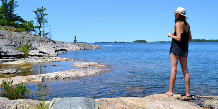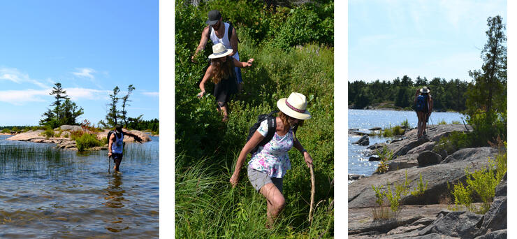 After an hour of tramping, we are rewarded with a spectacular landscape right out of a Group of Seven painting. We marvel at the fascinating rock-scape and the seemly endless array of islands.