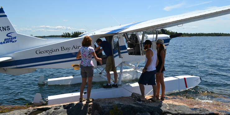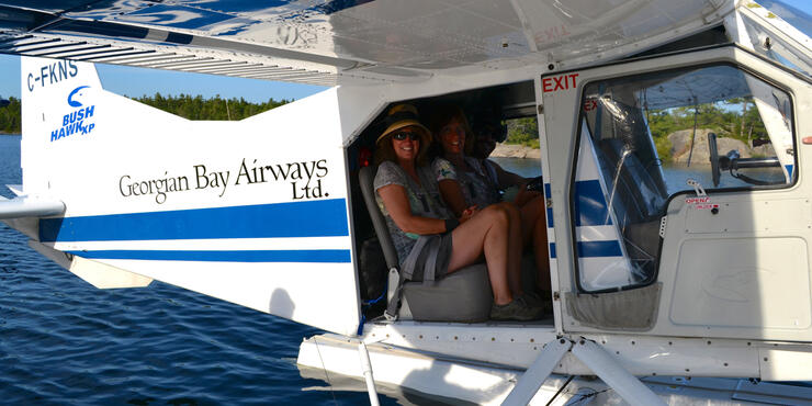 “Don’t worry, you’ve got the perfect day for flying” says the Georgian Bay Airways pilot as the 5-seat Found Bush Hawk float plane skims along the crystal clear waters in the Parry Sound harbor.