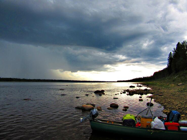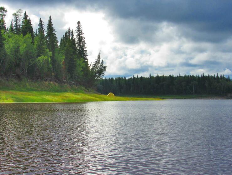 After an early morning of fishing and a belly full of breakfast, hit the water again en route to your next campsite just above the confluence with the Abitibi River. This stretch of river is relatively slow with a few small class I rapids to get things moving. As you wind your way downriver (keeping to the left side to avoid shallow water), keep an eye out for small creeks pouring into the river. These can be hotspots for monster pike gorging on prey items being washed into the river.