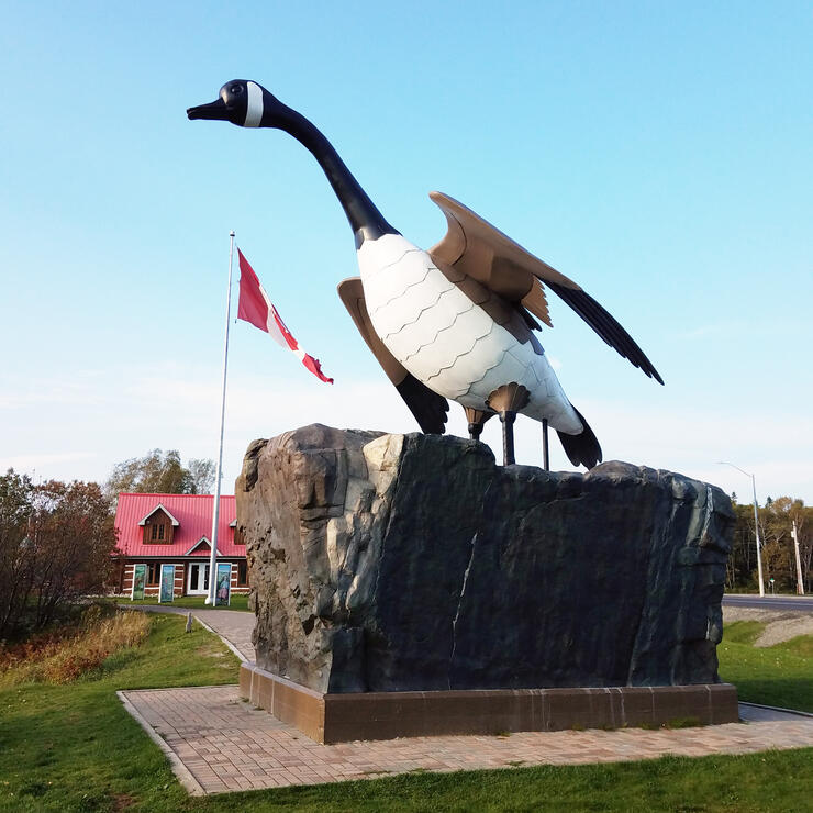 No trip to Wawa is complete without a visit to the famous Wawa Goose, recently rebuilt with a visitor centre, and ample big rig parking. You can stay in town with full hookups at the Wawa RV Resort and Campground. For those who prefer dry camping, you can overnight in the gravel parking area adjacent to the massive Scenic High Falls, which offers a covered picnic area, pit toilet, and even a small waterfall behind the parking lot (where you can access non-potable water).