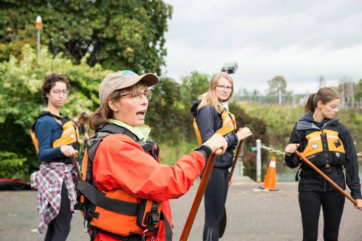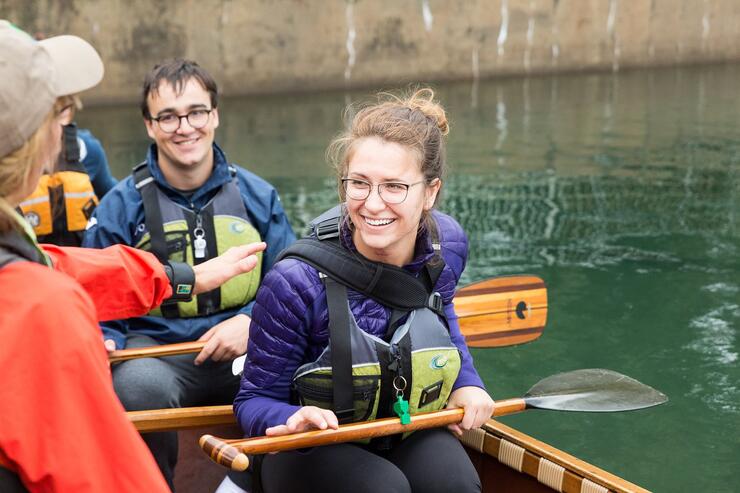 Joanie has gathered our group on land at Parks Canada and is explaining how bark canoes were sustainably harvested from the forest. As I hand out skillfully shaped paddles, I catch the pensive looks of participants. Our participants are eager and follow Joanie’s paddling and safety instruction fluidly. I notice Joanie is glowing with enthusiasm as she shares her passion with the group. I can’t decide whether she is energized because she gets to guide our newcomers’ first experience or because it is another beautiful day that she gets to spend on the water. In any case, I am imprinted with Joanie’s positivity as an irrepressible smile spreads to my cheeks. I am not alone—I observe similarly energetic looks spread across our group.