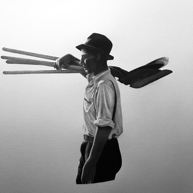 Ray Fox is a contemporary Anishinaabe artist whose work mainly consists of drawing. He has exhibited regionally and beyond, including recent solo shows at LopLops (Sault Ste. Marie) and Debajehmujig Creation Centre (Manitoulin). His work is inspired by family history, childhood memory, and creation stories of animals, which Fox explains, “to Anishinaabe people, are considered extensions of family, and whose stories are much older than ours.”