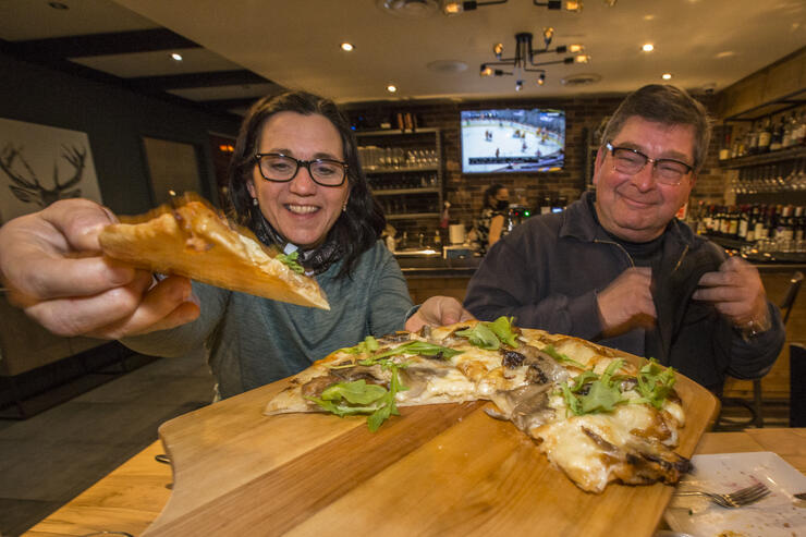 The crampons on the underside of our modern snowshoes provided easy traction to climb that final hill to one of the Sault’s best restaurants. We felt propelled by the thought of the delicious warm food and drink that awaited us inside (included in the tour price). We kicked off our snowshoes and were served a tapas-style meal, including some of Ember’s feature appetizers. We reviewed the highlights of the tour, shared pictures and more laughs. My teenagers opted to add dessert as well, since a hot fruit crisp with homemade ice cream, bourbon peach crème brûlé, amaretto cheesecake, and a tea sounded too good to pass up.
