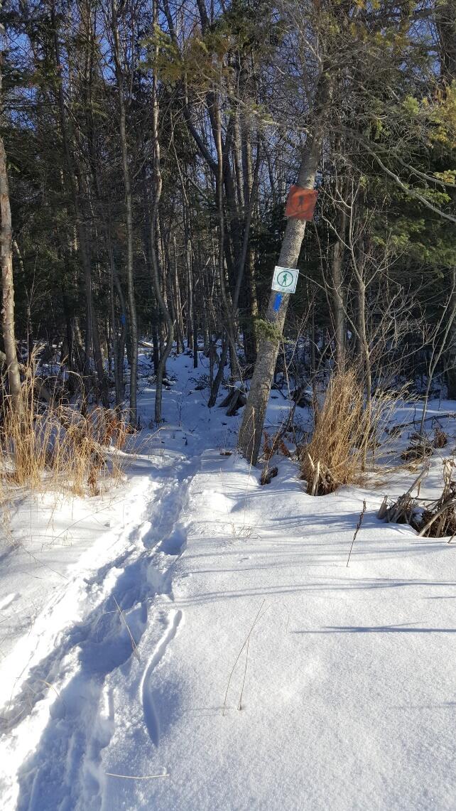 This loop should take about one hour or so to walk around. The trail is well used and may not require snowshoes. These lands belong to the SSMRCA, and dogs are required to be on leash. That being said, there are many who allow their pets free reign. It is a popular spot with many hikers, fat-bikers, and skiers, which requires good control over your pet for their safety as well as others in the area.