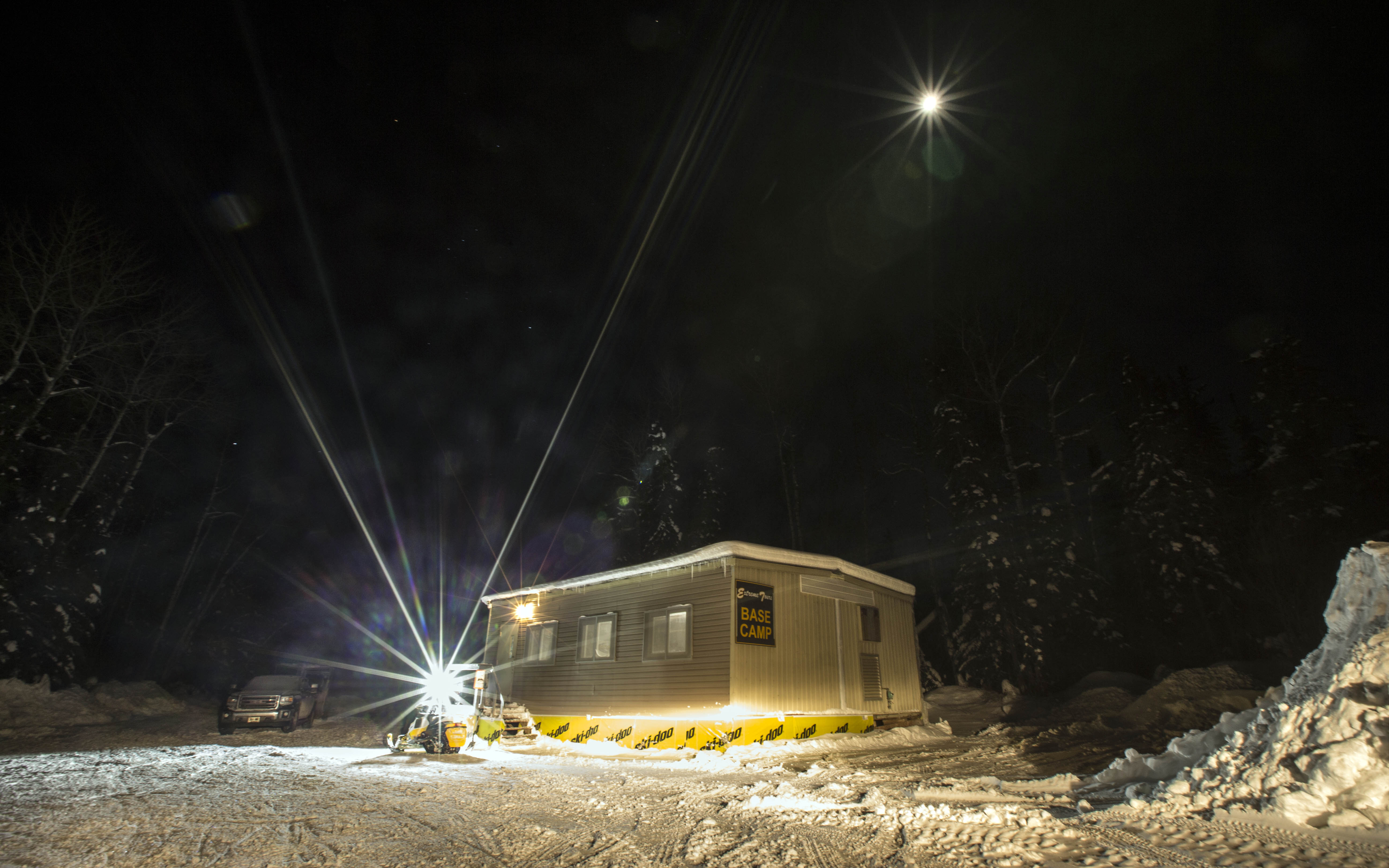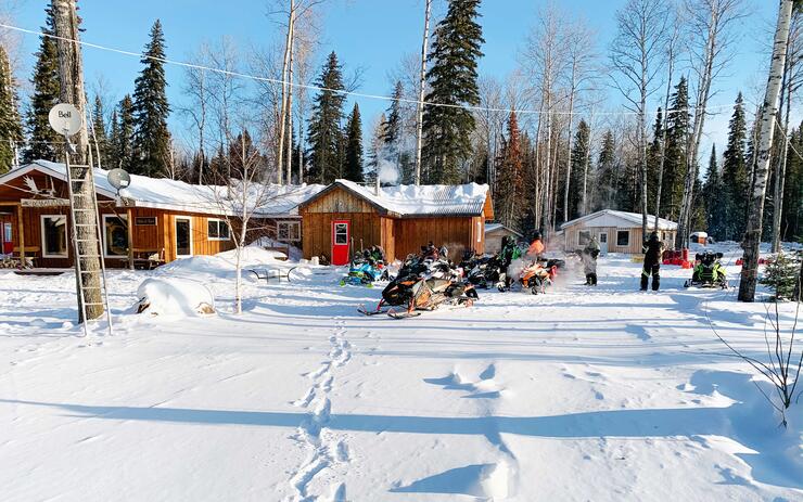 Upon arriving at the camp you can refuel—they have fuel for purchase, but it’s not premium—or you can fuel up with your fuel caddie. The inside of the camp is beautiful and very clean; there’s a large living area with couches and tables and a chef’s kitchen with the largest island I’ve ever seen! There are eight bedrooms, with two sets of bunk beds in each, and two bathrooms. Even with the large group we had, it never felt crowded in their space. You’re served a home-cooked meal for supper by the Tozers and you’re able to relax, watch TV, and get to know everyone in your group. They have four of the friendliest and well-behaved dogs to keep you entertained as well. There is no cell service or internet—a good way to disconnect. I will note that there is drinkable water provided at the camp, but there is no running water.