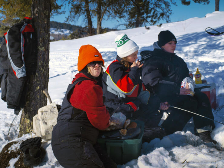 The thing with kids is: they’re tougher than you think, even when they’re half frozen. Upon reaching our destination on Vermillion Lake we discovered one of the youngsters' feet needed immediate attention. Moms set to work, and the dads… they cut wood, made a big fire, and set to work preparing the best part of the day—hot dogs!