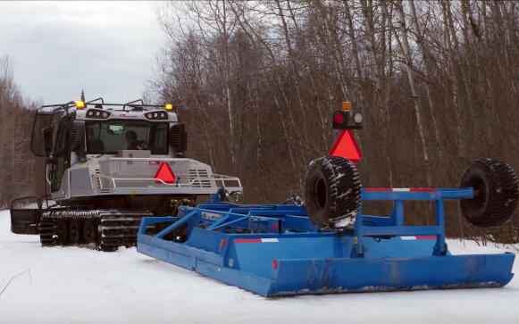 In the classroom, they learned about the “art of the trail,” a session by Ian Auger from New Liskeard, Ontario’s Ebert Welding shop. Ebert Welding is the inventor of the Sur-Track grooming system, where a farm tractor is converted into groomer with caterpillar-type tracks. It pulls a drag which grooms the trail and controls the steering, also known as a ram-steer. The operator turns his steering wheel inside the cab in the direction he wants to go and the cylinders mounted on the rear drag apply pressure to the tractor. Since the drag is firmly anchored in the trail, the hydraulic force exerted by the cylinders swings the tractor in the desired direction of travel while maintaining full pulling power to both tractor tracks. The drag creates resistance between the tractor and the edges of the snow, forcing the tractor in the opposite direction. This hydraulic synergy can be channeled to produce the most beautiful flat snowmobile trails when in the hands of a talented groomer operator. As it goes, the holy grail of all snowmobilers is to be the first snowmobile on the trail come the morning after an overnight grooming session.