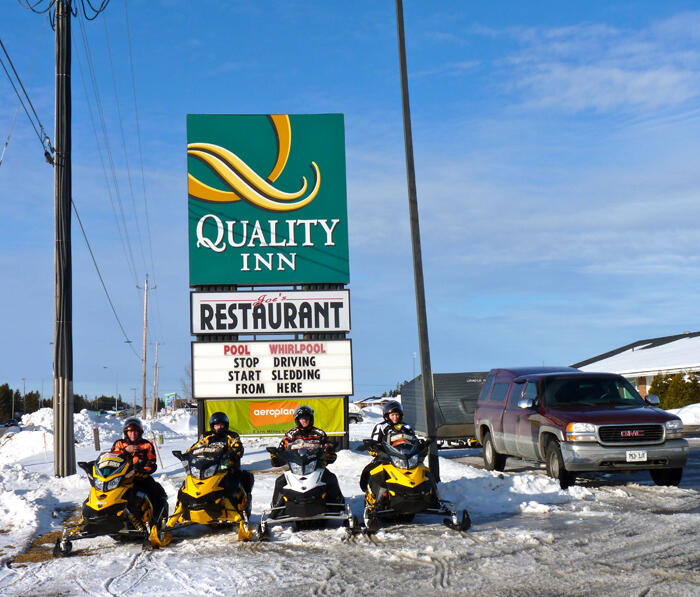 After a six hour tow from Southern Ontario, many visiting riders make the Quality Inn their destination. This ultra-snowmobile friendly motel has oodles of parking for trucks and trailers, which can be left there for the duration of your tour of Ontario’s Wilderness Region.