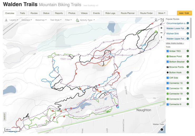 The Walden Trails, formerly known as the Naughton Trails, are a favourite among Sudbury mountain bikers. Moderately hilly and lined with trees, these well-marked trails offer picturesque views over the surrounding area at their highest points. Six self-guided routes make it easy to choose a distance and level of difficulty that best suits your skills.
