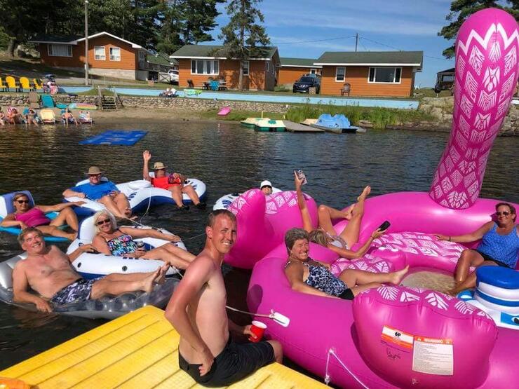 - True North Outposts & Cabins on Clearwater/Burditt Lake. Sand beach with lots of toys! Paddleboats, kayaks and paddleboards to use. Swim out to the floating dock with a diving board and slide.