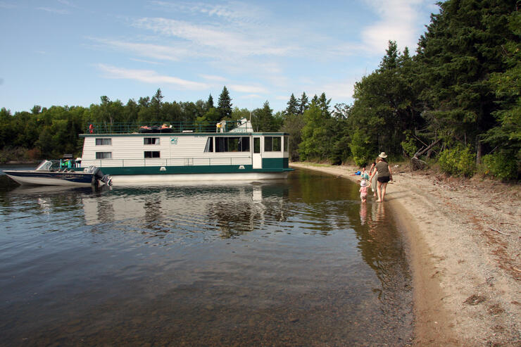 If you love to fish—and Sunset Country offers a spectacular fishing experience—a Houseboat is another way you can do that. Tow your own boat behind the houseboat, or rent one from the operator so you can fish to your heart's content. Up here the clock isn't really relevant; you ply the waters at your pace and you can decide to cruise the lake or moor your boat on a sandy wilderness beach. Have a walleye shore lunch, then go for a swim. Some houseboats even have slides—a great feature for kids.